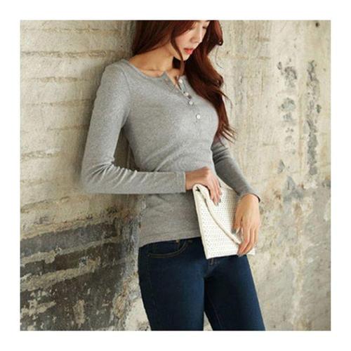 [에이치플러스몰]여성 기본 데일리 단추 슬림 클래식 골지 긴팔 티셔츠