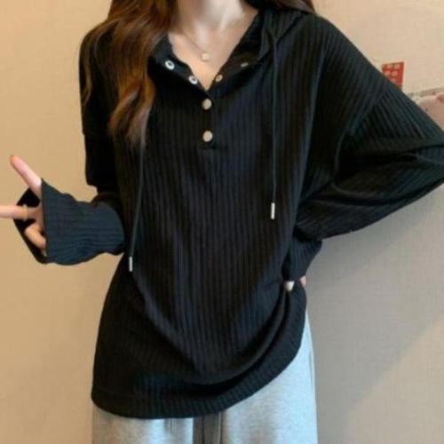 [다잇템_패션]여성 후디 빅사이즈 골지 티셔츠 단추포인트