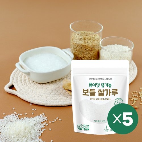 [퓨어잇] 유기농 보들쌀가루 백미 초기 중기 5팩세트 이유식 베이스 죽 쌀미음
