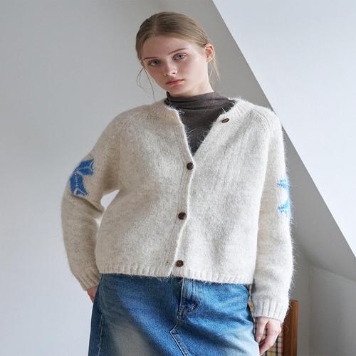 [르샵]라운드넥 눈꽃 자수 니트 가디건 (DP4CK028A)