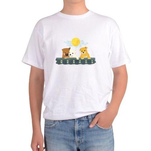 [에이치플러스몰]길단 반팔 USA핏 달빛 강아지 친구 커플 달빛아래사랑 귀요미그림 다양한색상 전사이즈