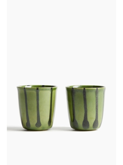 [에이치엔엠] 드립 글레이즈 스톤웨어 머그 2피스 세트 그린/패턴 1288920002