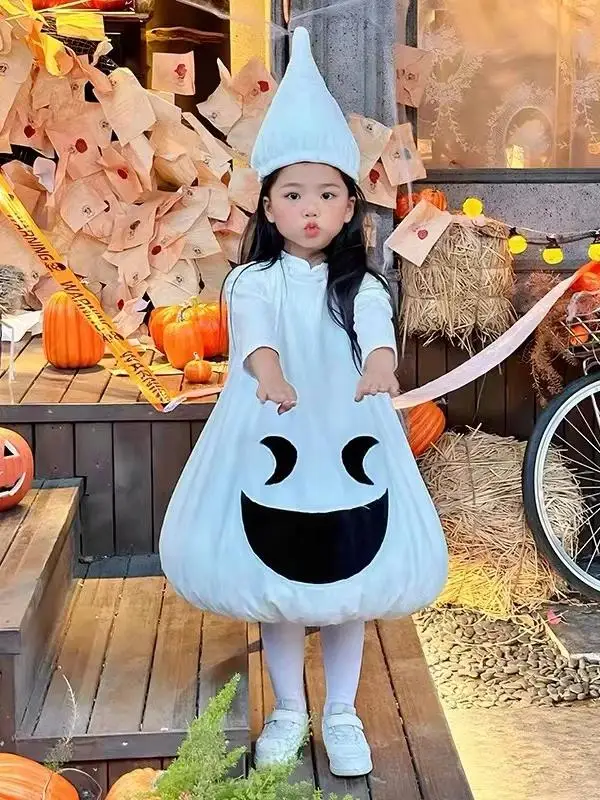 화이트 고스트 코스프레 의상 어린이 공연 의상 폴리에스터 섬유 댄스 가면 파티 고스트 의상 소녀용