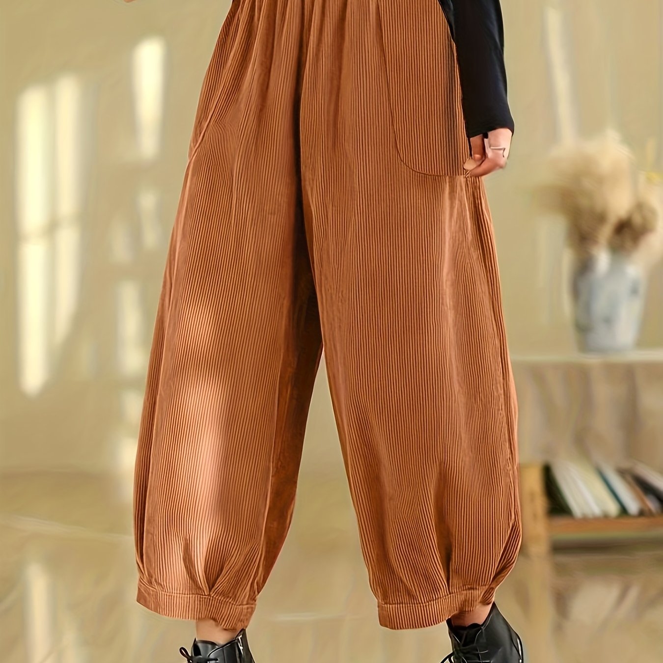 TEMU 여성용 코듀로이 하렘 팬츠 - 신축성 있는 허리밴드, 와이드 레그 코듀로이 바지, 봄 여름 가을에 적합, 캐주얼 우아한 긴 바지, 벨트리스 디자인, 손세탁 가능한 루즈핏