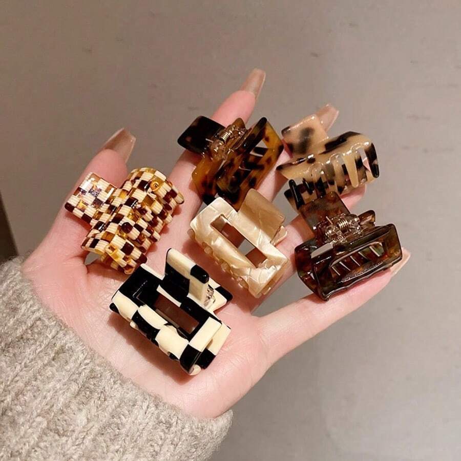 TEMU 여성용 반머리 스타일링에 완벽한 세련된 프린트 & 체크무늬 아세테이트 헤어클립 6pcs 세트