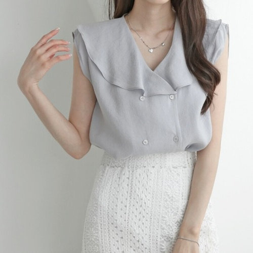 플러리싱 / 모달 러플 더블 버튼 나시 블라우스 플러리싱