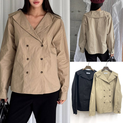여자 동글단추 더블 카라넥 나일론 셔츠