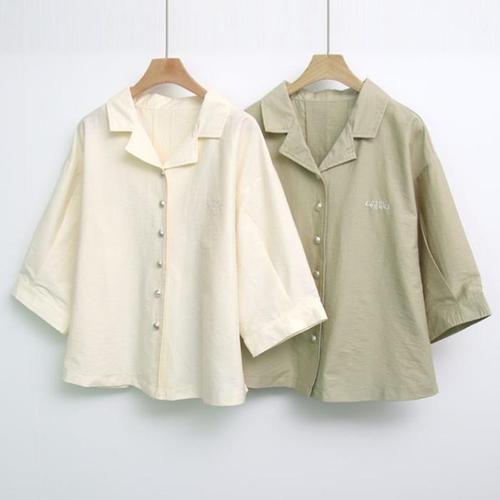 여자 더블 동글단추 하프소매 바스락 셔츠
