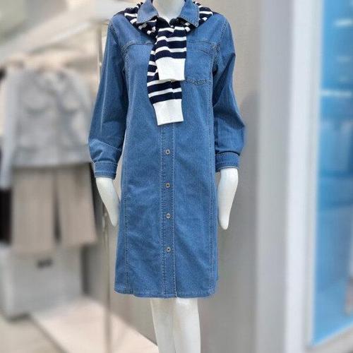 [더틸버리]셔츠 카라 데님 원피스+니트 숄 세트MTR3M8OP01W_DG