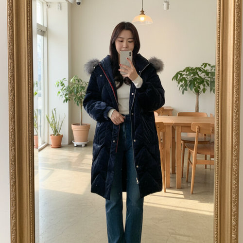 슈팅스타 / 퍼트리밍 벨벳 퀼팅 덕다운 롱패딩