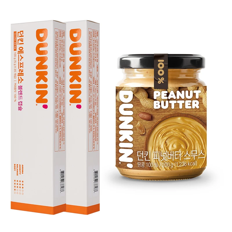 네스프레소 호환 에스프레소 100캡슐 + 던킨 땅콩버터 100% 크런치 1개+스무스 1개