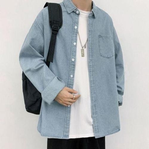 [에이치플러스몰]남자 가을 봄 오버핏 캐주얼 청셔츠 청 데님 아우터 셔츠 남방 워크셔츠