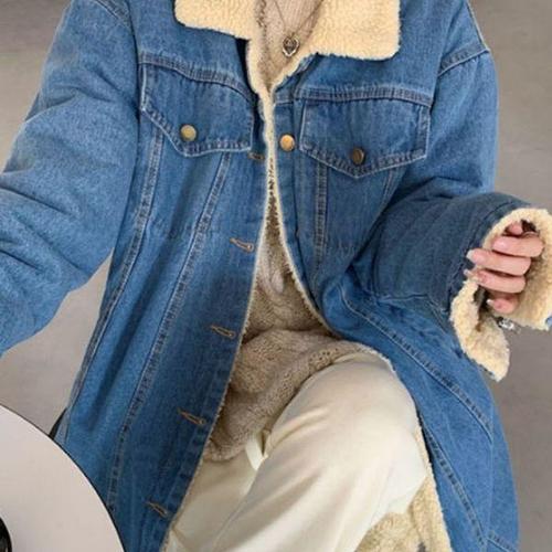 [콩심팥심]데님 부드러운 점퍼 재킷 안감의 양털포인트 롱 양털