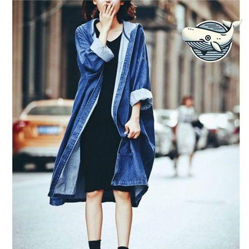 [셀러허브_여성트랜드패션]오버핏 여성 청코트 데님 롱 사파리 자켓