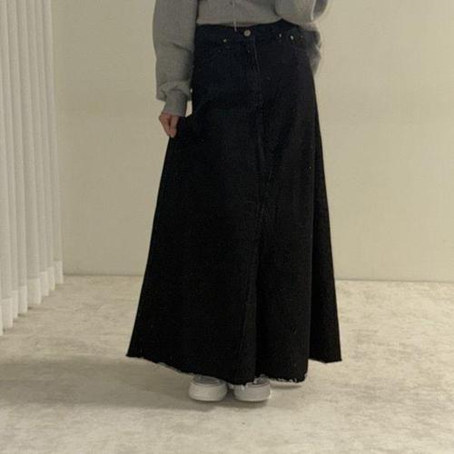 [다잇템]여자 테슬 블랙데님 컷오프 MAXI 롱스커트