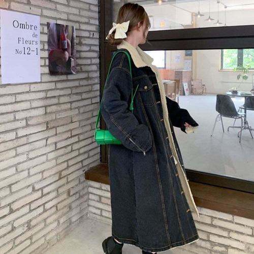 여성 데님 안감 롱자켓 양털 루즈핏 캐주얼