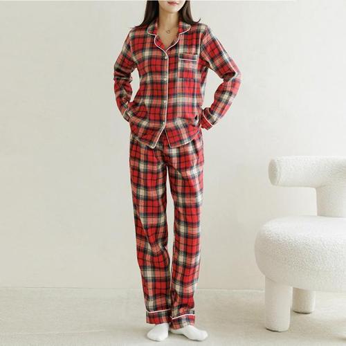 [데드라](~88size)겉기모코튼체크홈웨어SET HWE5001_DC