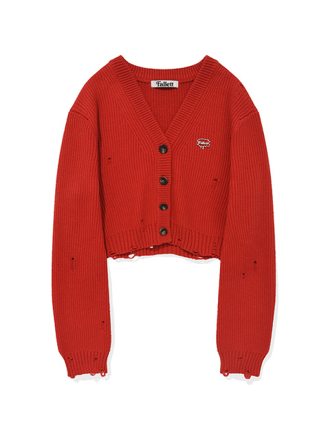 [팔렛] 데미지 니트 가디건 레드