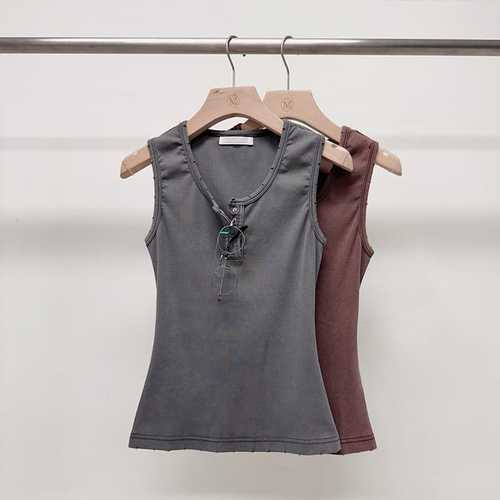 미즈큐즈 / 피그먼트 워싱 데미지 스냅 버튼 골지 민소매 나시티