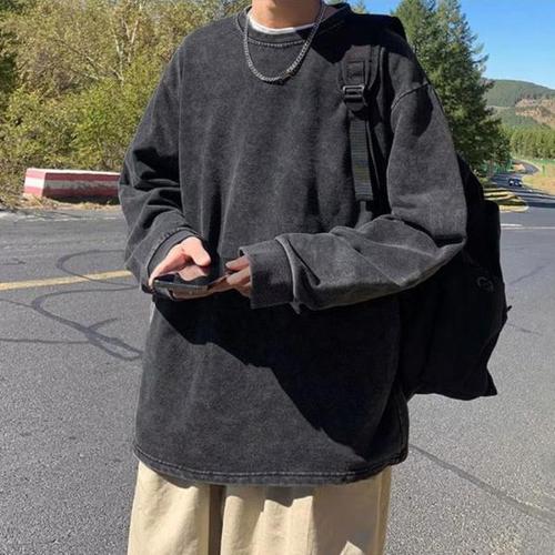 [다잇템]남자 가을 빈티지 데미지 라운드 블랙 티셔츠