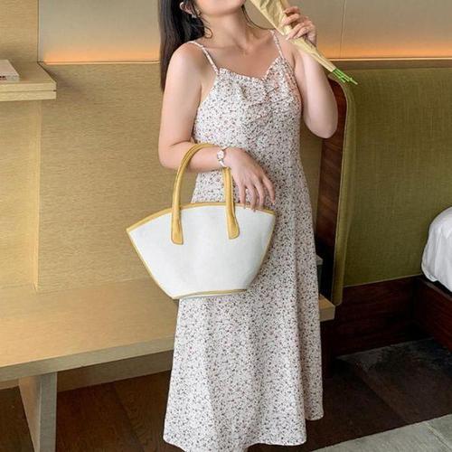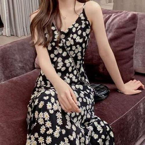 [에이치플러스몰]러블리 데이지 플라워 여성 끈나시 여름 롱 원피스
