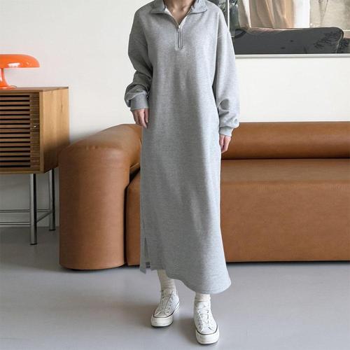 [문에이블]문에이블 여자 여성 겨울 루즈핏 빅사이즈 반집업 베이직 따뜻한 기모 데일리 롱 원피스