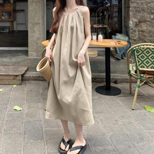 [에이치플러스몰]코튼 롱원피스 데일리 민소매 여름 원피스