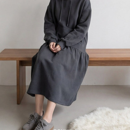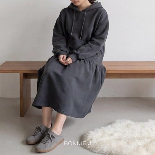 [보니제이]보니제이 루즈핏 후드 롱 원피스 봄가을 데일리룩 오