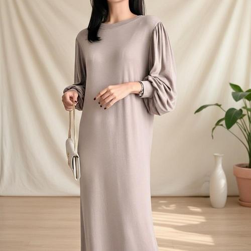 니트원피스 가을 겨울 허리끈 루즈핏 데일리 롱 (KYR-WFH75K9)
