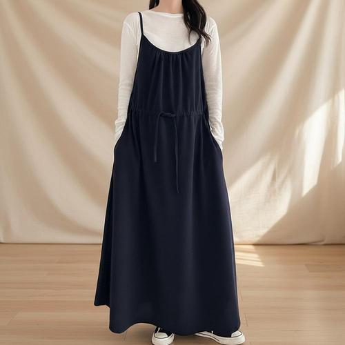 [옷자락] 여성 봄 데일리 롱 끈 셔링 원피스