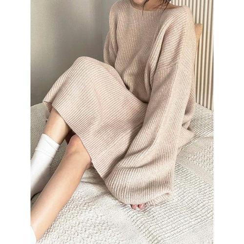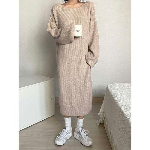 [샵앤]여성 보트넥 데일리 롱 니트 원피스 MCR-WDR-4962-베이지