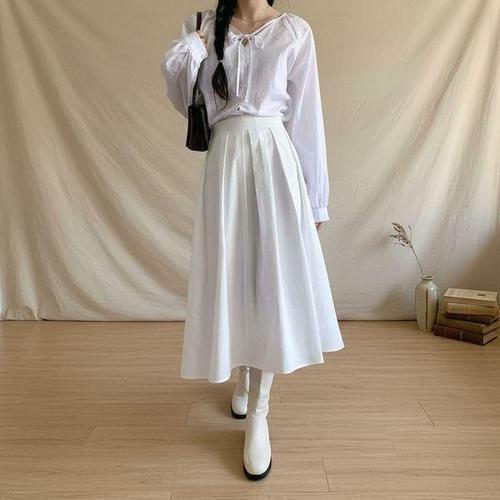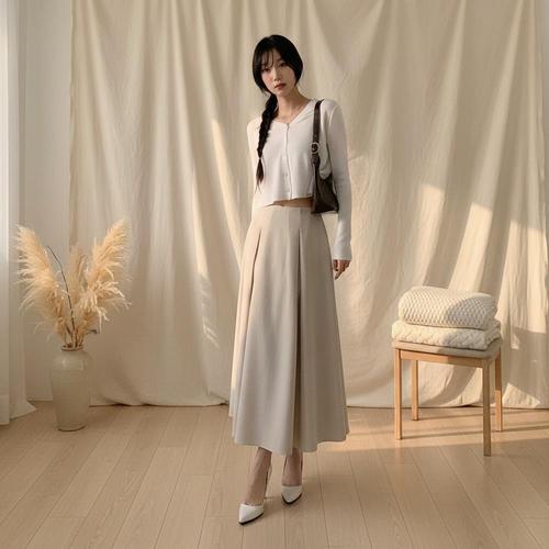 [옷자락]여성 A라인 핀턱 롱 데일리 스커트