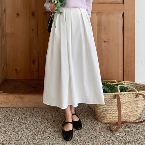 [신상오픈런]여성용 롱 스커트 무지컬러 핀턱 플레어 데일리 룩