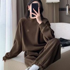 HASVZ가을 겨울 신상품 여성 여성트레이닝 세트 데일리 캐주얼 고급 빅 사이즈 기모 반폴라 후드티 조거 팬츠 투피스 루즈핏