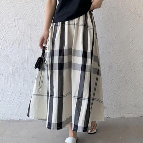 [에이치플러스몰]여성 여름 간절기 데일리 체크 패턴 롱 스커트 치마