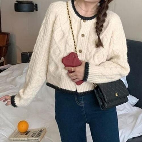사무실가디건 여성 봄 가을 겨울 꽈배기 니트 라운드넥 도톰 가디건