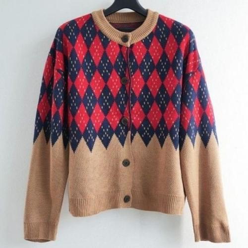니트가디건 여성 도톰 컬러 배색 브이넥 니트 가디건