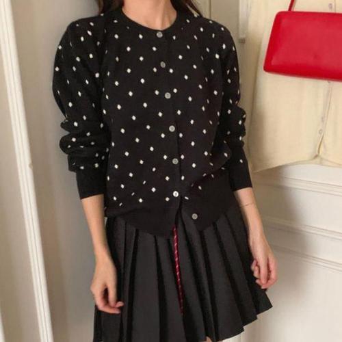 [에이치플러스몰]심플한 가디건 땡땡이가디건 베이직 도트 니트 데일리