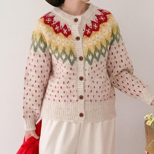[다잇템]여자 부클니트 레인보우 땡땡이 U넥 가디건