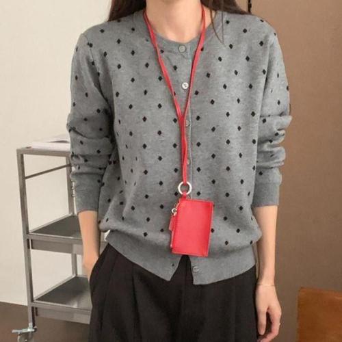 리빗 여성 데일리 도트 니트 긴팔 가디건