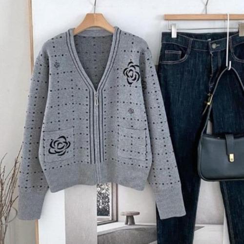[다잇템][다잇템] 여성 주머니 V넥 스웨터 집업 키치룩 땡땡이 가디건_22887793_588872