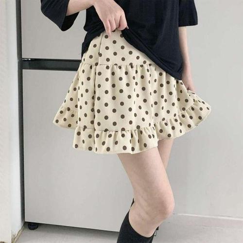 [신상오픈런]여자 러블리 땡땡이 핀턱 프릴 뒷밴딩 미니 스커트