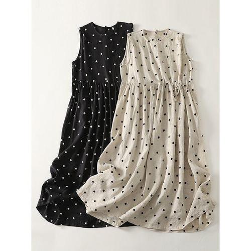 [넬리]푸링 린넨 베이직 도트원피스_NC2OP026