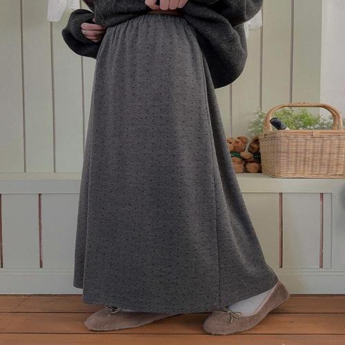 해피유통 여성 가을 겨울 니트 도트 무늬 러플 장식 롱 스커트