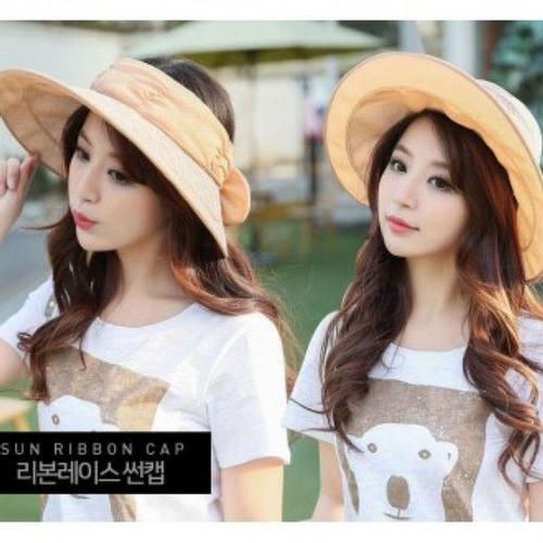 [에이치플러스몰]리본 레이스 돌돌이 모자 썬캡 선캡 여름