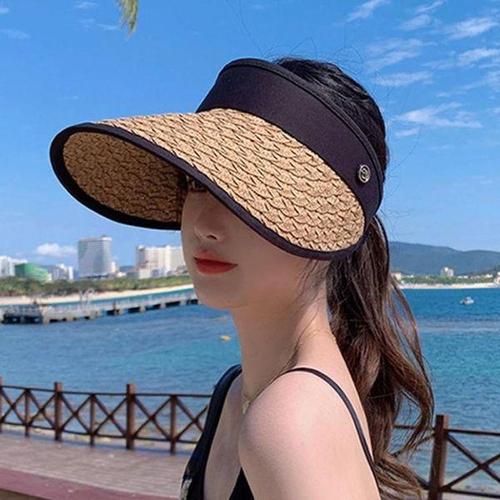 여성 여름 UV 차단 밀집 라탄 돌돌이 썬캡 모자 밀집모자 자외선차단모자 돌돌이모자 여성썬캡 여성여름모자