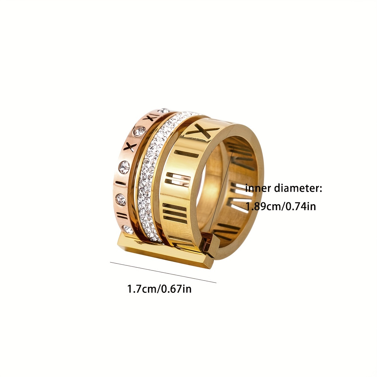 TEMU 고급스러운 빈티지 패션 304 스테인리스 스틸 18K 금도금 라인스톤 인레이 홀로우 로마 숫자 남성용 반지, 파티 선물 추천