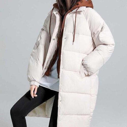 [에이치플러스몰]여자 롱패딩 부드러운 후드집업 레이어드 두꺼운