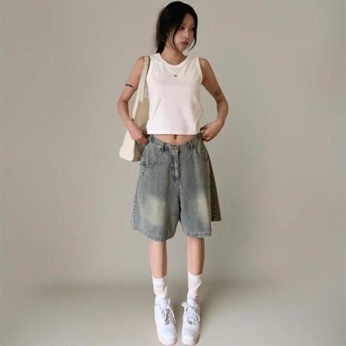 [모노무드]모노무드 허리 뒷밴딩 기본 청반바지 편안한 여름 데님 반바지 캐주얼 팬츠
