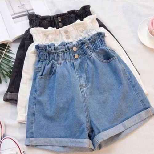 반바지 숏팬츠 쇼츠 허리밴딩 하이웨스트 롤업 청반바지 HH-A52